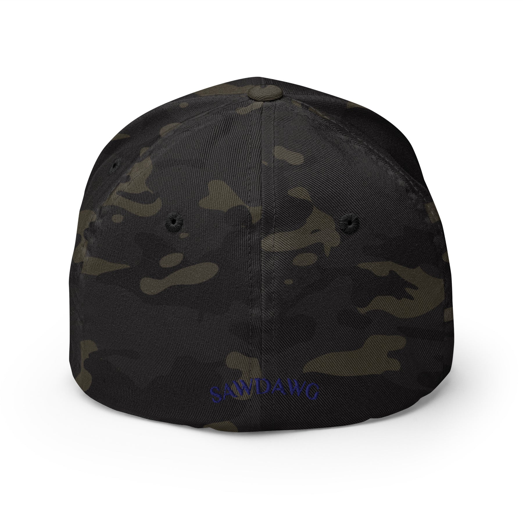The 'SawDawg' Flex Cap combines durability and comfort with its twill fabric blend of 63% polyester, 34% cotton, and 3% spandex. This material mix ensures flexibility and breathability, offering a snug yet comfortable fit ideal for active use. Its expert craftsmanship makes it a reliable choice for extended wear while maintaining a sleek, professional appearance.